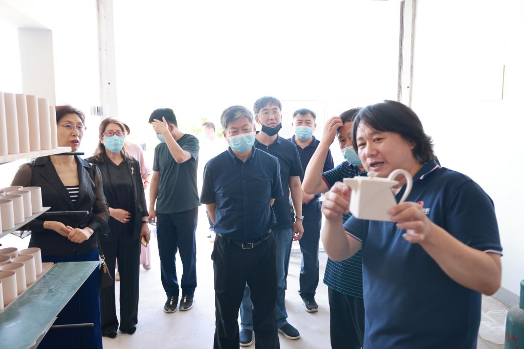 6月20日,辽宁省人大常委会委员、教科文卫委员会副主任委员曾庆捷率调研组来到抚顺大官窑陶瓷文创园,听取我校创新创业学院教师、抚顺大官窑陶瓷非遗传承人王永亮教授关于继承和弘扬大官窑历史文化情况的介绍,对我校近年来重视中华优秀传统文化的创新与发展和以史育人等方面工作给予充分肯定。抚顺市人大常委会副主任张家娟等陪同调研。